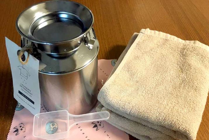 クリーニング工場でも実際に使用されているという「オリジナル洗濯洗剤」は、ミルク缶に入っているというかわいい見た目もさることながら、その洗浄力も大変優秀とのこと。