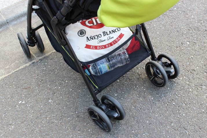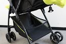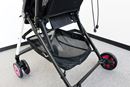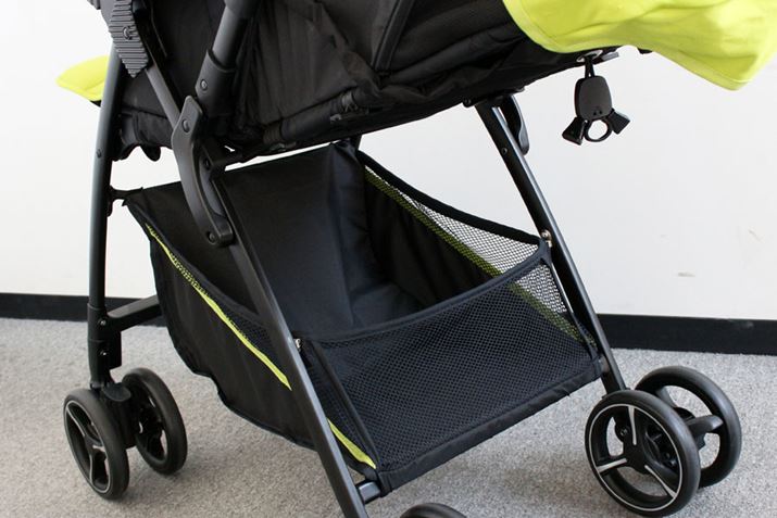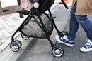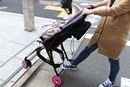 シックなカラーやスタイリッシュなデザインに仕上げられた「PATTAN」は、カジュアルに使えてパパ受けもよさそう。座面幅は実測29cmとゆったり座れ、「足のせバー」の角度も3段階から角度調整できるため、成長に合わせた座り方ができます。さらに、シートは通気性のよいメッシュ生地。取り外して洗濯することもできます。実際に走行させてみると、荷重が軽い時はスムーズでしたが、12kgの荷重を乗せると前輪が若干ふらつく印象。左右に曲がる際も少し力が必要でしたが、動き出せばスムーズです。段差ではバーに足を引っかければ前輪が持ち上がり、ラクラク乗り越えられました。バスケットは20Lまで入れられ、紙おむつや抱っこひももサッと取り出せます。