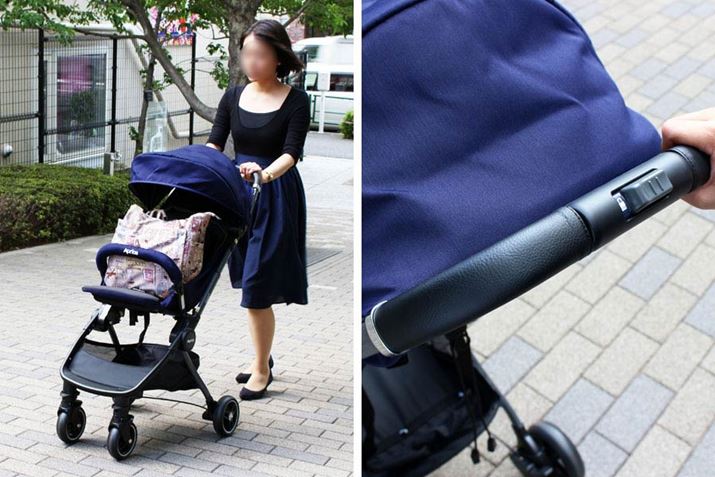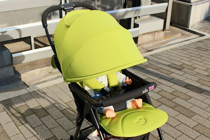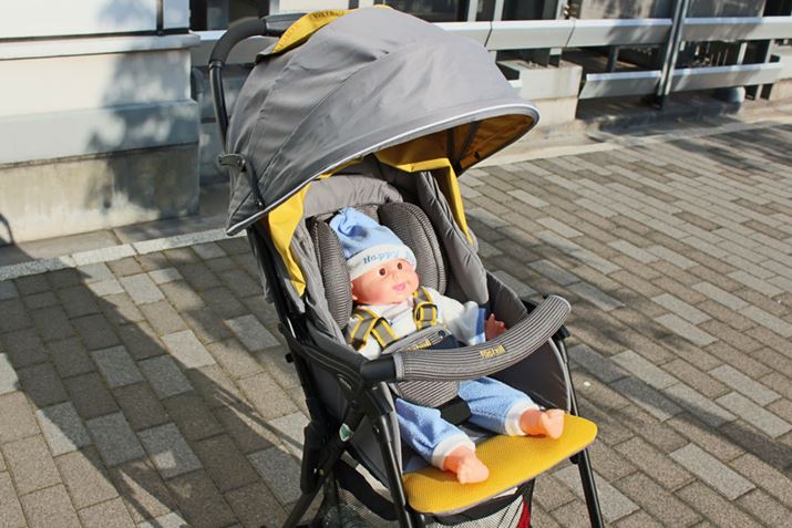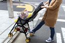 イギリス生まれならではの発色が目を引くベビーカー。海外製のためか、座面がかなり広く、赤ちゃんが成長してもゆったり座れそう。シートは取り外して洗えるほか、本体部分もメッシュになっているので通気性も◎。ホロも深めなので、暑い日差しから赤ちゃんを守ってくれるでしょう。走行については、太めのフレームは安定感があり、ホイールも大きいので段差も一発で気持ちよく乗り越えることができました。重心が後ろ寄りに設計されているのか、より高い段差もハンドルを押し下げるだけで前輪がひょいっと上がり、難なくクリア。電柱の回り込みは、少々大回りになったものの、通常の方向転換は簡単です。ただ、ハンドルが高い位置にあるため、今回一緒に検証した155cm以下の女性は、慣れるまで段差乗り越えが「ヨイショ」という感じになったとのこと。また、本体重量が4.3kgあり、幅もあるので、抱え込んで階段の上げ下ろしを行うのは小柄な女性だと扱いづらいかもしれませんが、逆に、身長の高い男性には使いやすいと高評価でした。