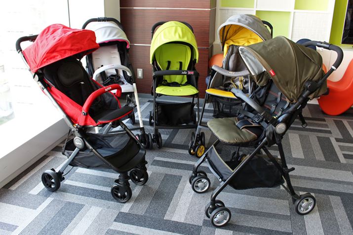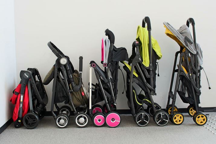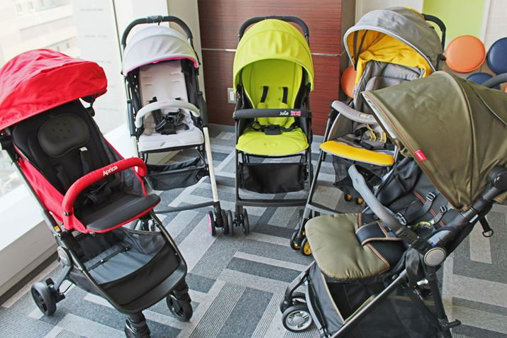 ここからは、選定した注目のAB型ベビーカー5台を、実際に押したり持ち上げたりしながら、それぞれの特徴をチェックしてみましょう。5製品とも、片手で折りたたむことができ、自立もするタイプとなっています。なお、今回の検証ではベビーカーに赤ちゃんを載せたまま持ち上げて階段を上るなど、メーカーが推奨していないような使い方もしていますが、実生活ではこのような使い方をしている人は多く、そのあたりの使用感も知りたいという声が多いので、リアルな使い方を優先して調査しました。