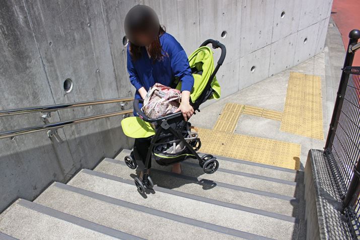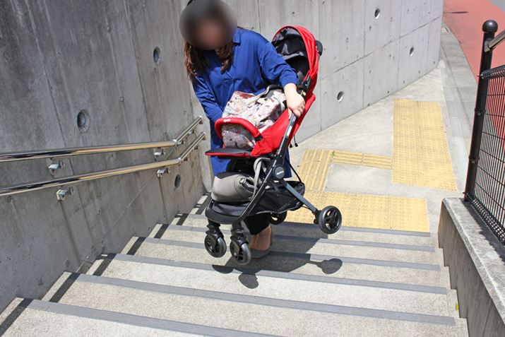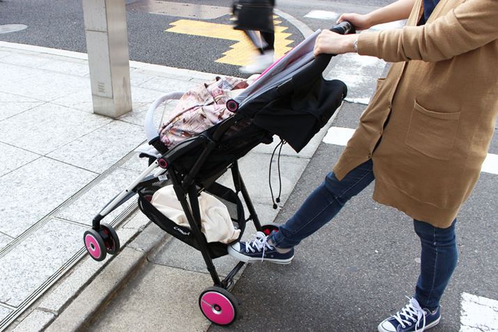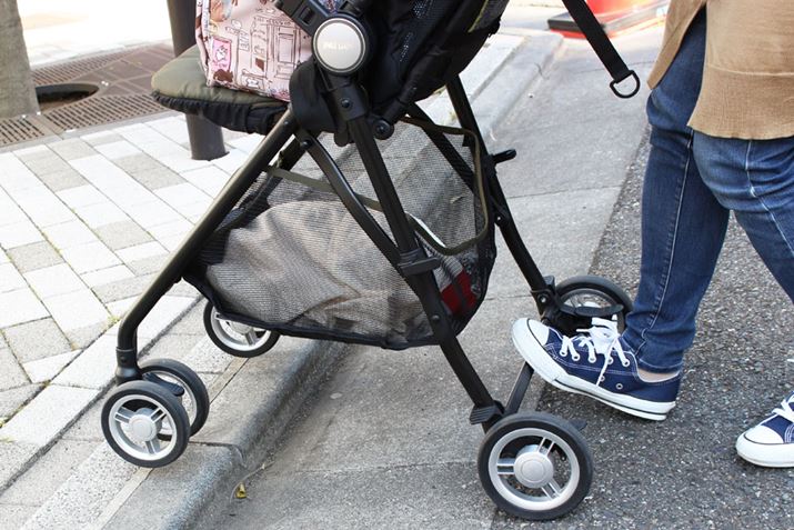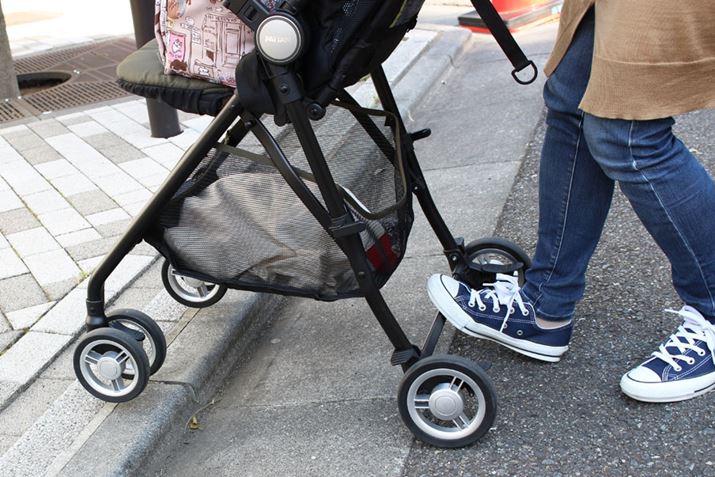 操作性を確かめる時には、段差が乗り越えやすいかも要チェック! スッと上がれないとぶつかってしまい、その衝撃が赤ちゃんに伝わってしまいます。なお、キャスターをつなぐバー部分に足をかけて前輪を持ち上げる方法もありますが、メーカーが推奨していない場合もあるので、そのあたりも確認しておきましょう