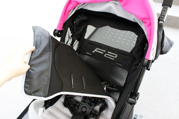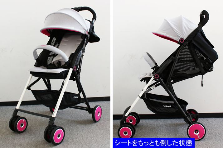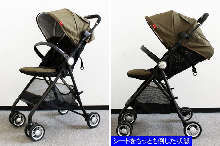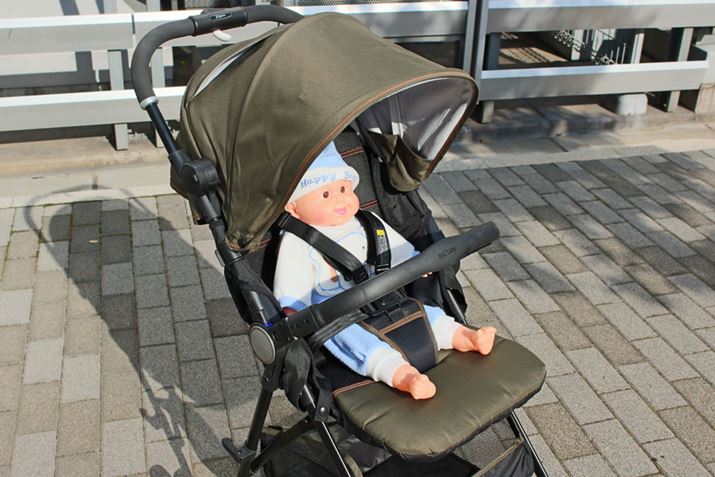 もともとB型のベビーカーとして評判の高い「F2」をベースに、リクライニングの角度を深くし、生後1か月から使える仕様にしたのが「F2 plus」。細身でスマートなデザインに加え、ホイールキャップのカラーを替えたり、2台をジョイントできるなど、斬新なアイデアが人気を集めています。そんなデザイン性が目を引くだけでなく、設計もよく、ハンドルからキャスターまで一直線に伸びるストレートフレームが押す力を的確に伝え、操作は快適で安定感もバツグン。前輪は小さめ、後輪は大きめにしたことで小回りもいい感じです。ただ、大きな段差は少し引っかかりやすかったので、最初からバーを踏んで前輪を持ち上げるといいでしょう。座面が狭く浅めなので、赤ちゃんが成長した時、大きめの子にはきつくなる可能性もありますが、本体が軽くてコンパクトであるメリットは「大」! 階段の上げ下ろしも苦になりません。なお、シートは丸洗いできるほか、本体も通気性がいいので赤ちゃんも快適に過ごせるはずです。