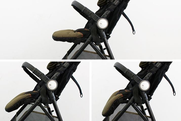 3段階調節可能な「足のせバー」が秀逸。ベビー期は足を伸ばして、大きくなってきたら足を下ろして、と成長に合わせて快適な座り方ができます。この機能は、今回試した5機種の中で唯一無二!