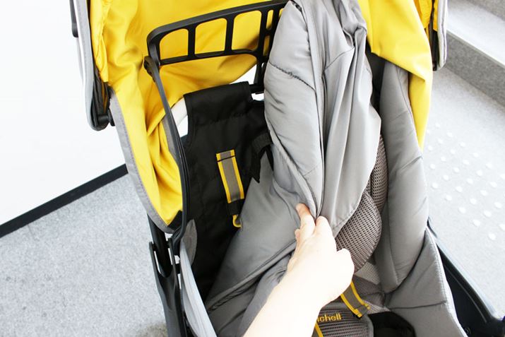 赤ちゃんが勝手にロックを解除しないよう、バックルカバーを装備。やわらかくクッション性が高い素材で、硬いバックルが赤ちゃんに直接当たらないという安心もあります