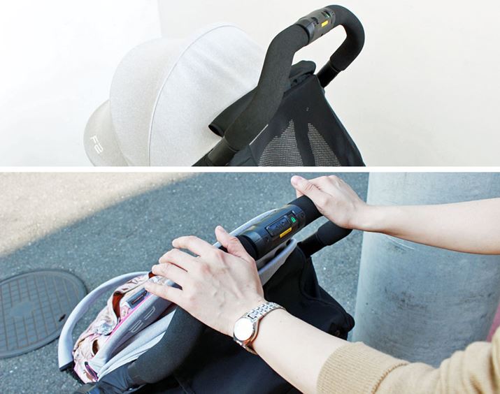 そして、PATTAN最大の特徴といえば、名前のとおりパタン!とワンタッチでたためること。ハンドルを前に倒し、そのまま後ろに引くだけで自然にたためるので、片手に赤ちゃんを抱っこしていても操作できます。しかも、高さも低くなるので重心が安定して倒れにくく、かつ、電車や車への持ち運び、収納もしやすそう。赤ちゃんを守るフロントガードが、肩にかけたり引っ張ったりするベルトとしても使えるというアイデアも◎! 重量4.7kgはこのクラスでは軽いほうではありませんが、持ち運びやすさでカバーできます。
