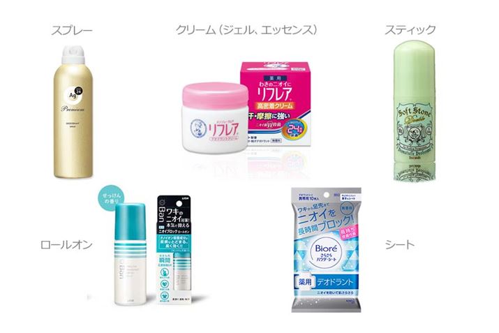 デオドラントや制汗剤には、スプレー、ジェル(クリーム、エッセンス)、スティック、ロールオン、シートなどさまざまなタイプがあり、それぞれ以下のような特徴があるので、使用するタイミングや体質に合わせて選びましょう。