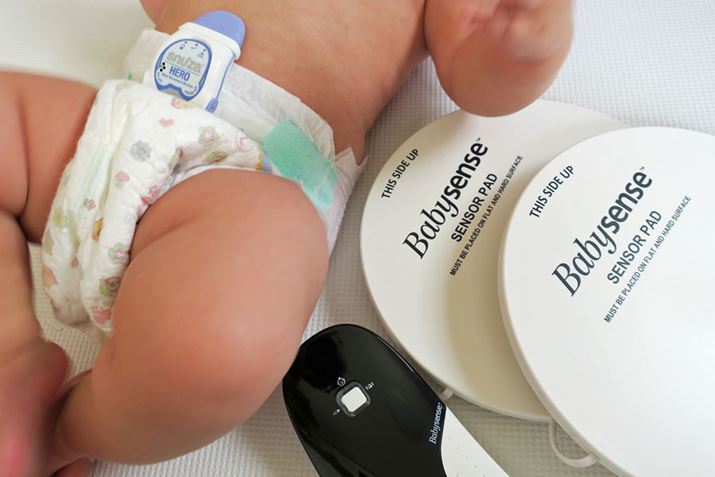 ベビーセンス5sは、センサーが搭載されたパッドと本体(警報装置)がセットになった乳幼児用呼吸モニターです。敷き布団やマットの下に入れたパッドが赤ちゃんの呼吸による動きを検知し、赤ちゃんの動きが20秒間止まる、または1分間に10回以下になるとアラーム音と光で知らせてくれるという仕組み。海外製ですが、日本国内の産院でも使われている評判の高い製品で、現に、筆者にすすめてくれた先輩ママも産院で実物を見て購入したほどです。