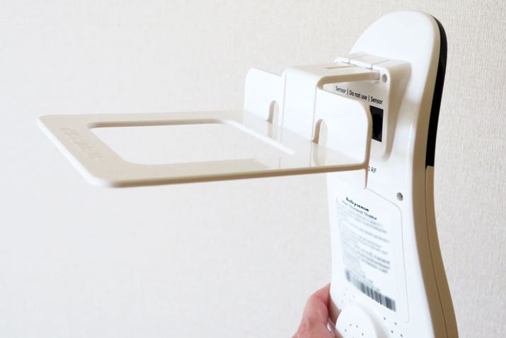 今回は撮影の都合上、本体を床に置いていますが、付属のアタッチメントを使い、ベビーベッドなどに引っかけることもできます