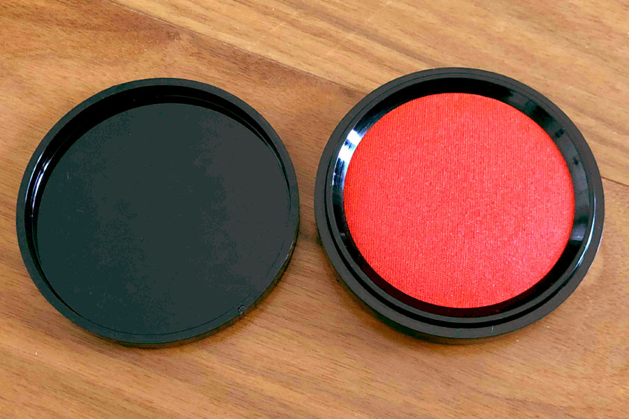 筆者が購入したのは、マックス株式会社の「瞬乾朱肉 プレミオ」。印影が美しいのはあたりまえ、さらにハンコを押してから約3秒でインクが乾くというすぐれものです。筆者の場合、なぜかハンコを押すときは息をとめております。ギュッと紙に押し付けて、ハンコを離してからゆっくり深呼吸というのがいつもの押印パターン。深呼吸の時間は、3秒ほどなので、いつもどおりハンコを押せば、3秒を意識することなく印面が乾いているということに♪