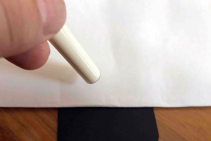 実際に使ってみると、特に意識しなくても3秒なんてあっという間に過ぎてしまいます。朱肉が乾く時間を待つといったことはほとんど気にせず、押印した書類を重ねても裏写りすることはありませんでした。これならスムーズな押印作業が可能になりますよ。どちらかといえば「朱肉を付けてすぐに押印しないと、印面が乾いて押印できないのでは?」ということのほうが心配になります。