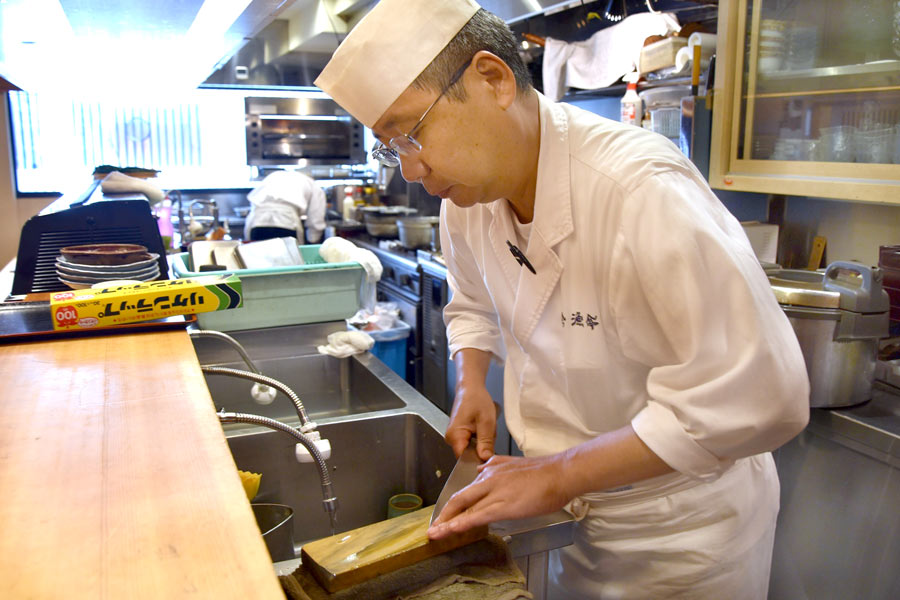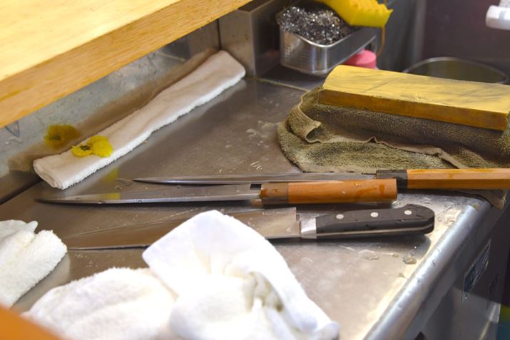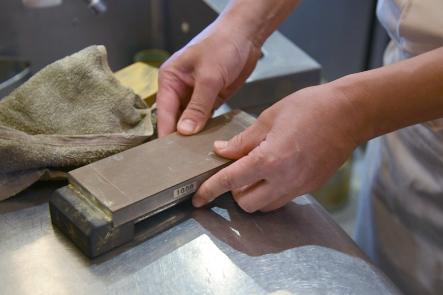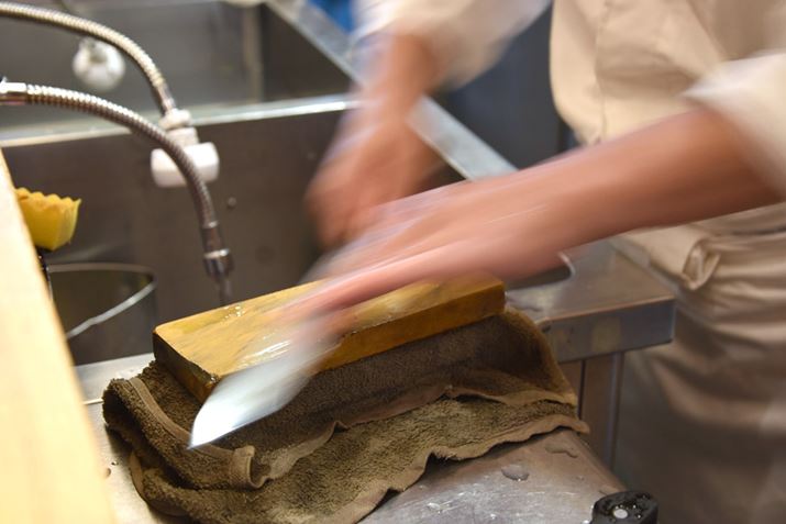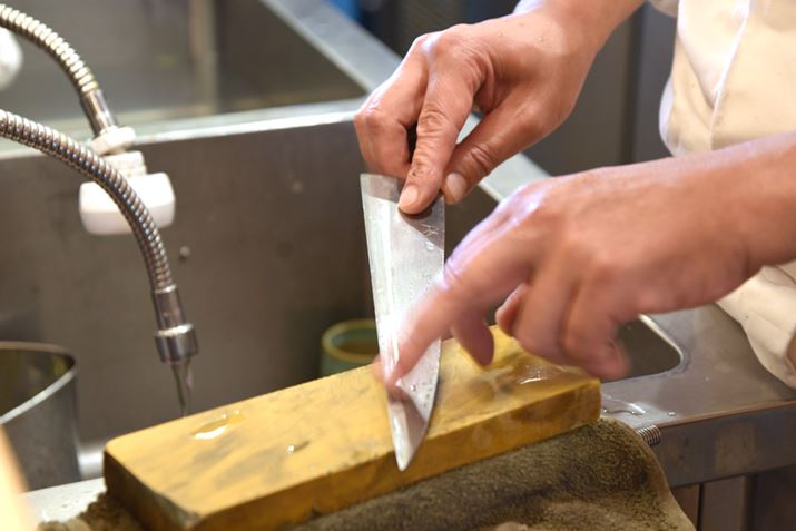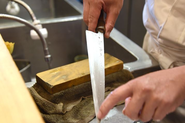 片山「そうですね。たとえばその日に魚料理が多く出れば包丁を使い込むので、切れ味が落ちます。同じ包丁を2本持っているので、1本目の切れ味が悪くなったら包丁を変えて、もう1本を研いでおくという感じですね。先ほども言ったように、あまり研ぎすぎると強度がなくなるのであまりよくないんですよ」