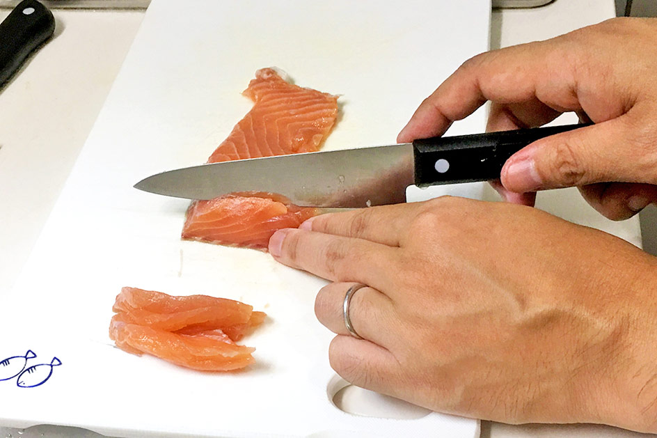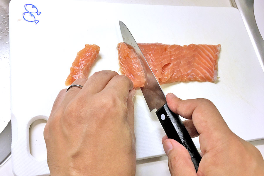 研ぐ前に、まずは数か月使い続けて劣化した包丁で魚を切ってみた