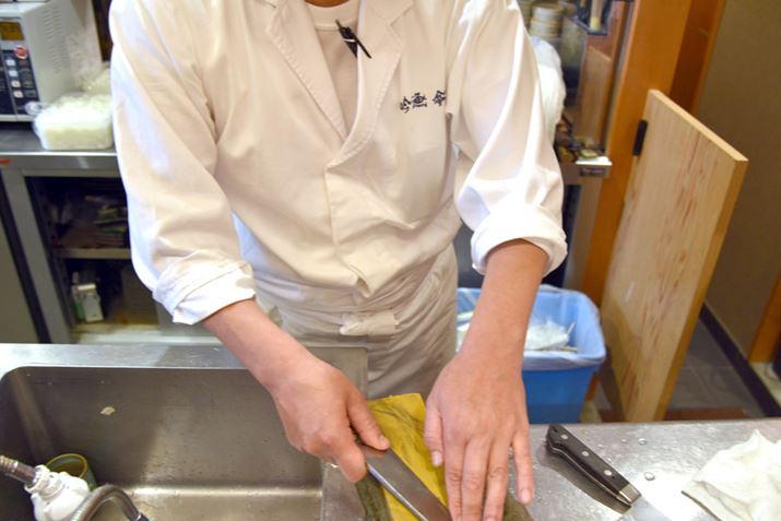 片山「そうですね。1本の包丁を20年くらい使います。最後は出刃包丁がペーパーナイフくらいのサイズになりますからね。小さくなったら小さい魚をさばいたり、お新香用にしたり、包丁のサイズに合わせて使い方も変えていきます」