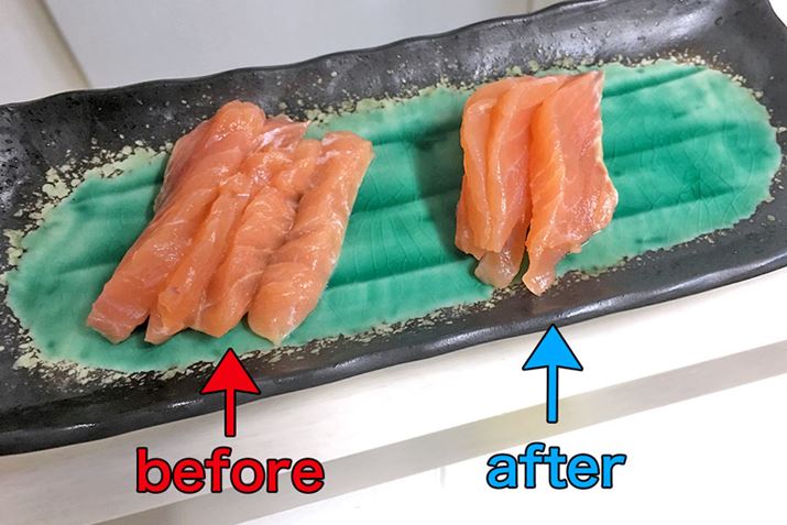 切った刺身を食べ比べると、味の違いがよくわかる。