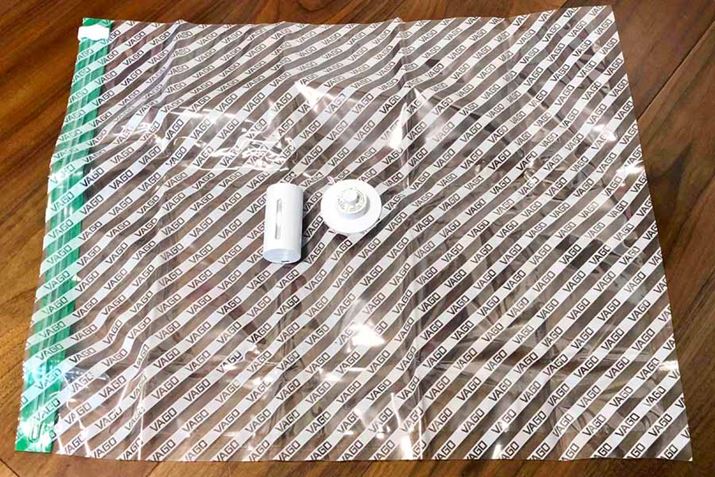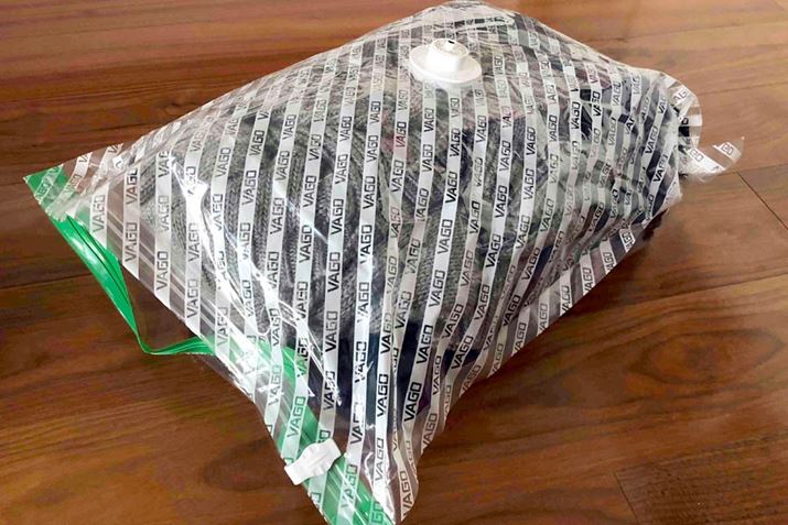 それでは実際に「VAGO」を使ってみましょう。なお、圧縮袋は「VAGO」専用のものを利用します(本体を購入するとMサイズの専用圧縮袋が1枚付属しています)。