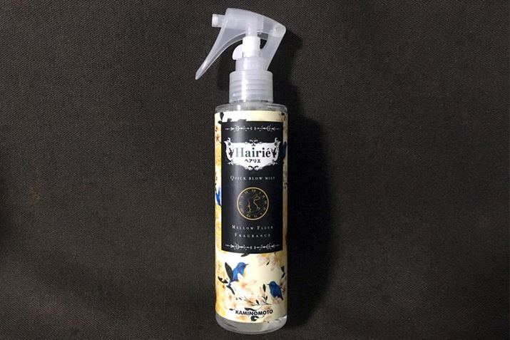 最初は「速乾スプレー」を試してみたいと思います。今回はドラッグストアでもよく見かける「ヘアリエ クイックブローミスト」を選んでみました。