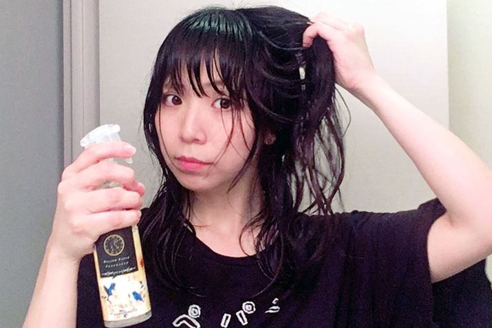 そのあと、ドライヤーの熱から髪を守るために、アウトバストリートメント(洗い流さないトリートメント)を付けます。