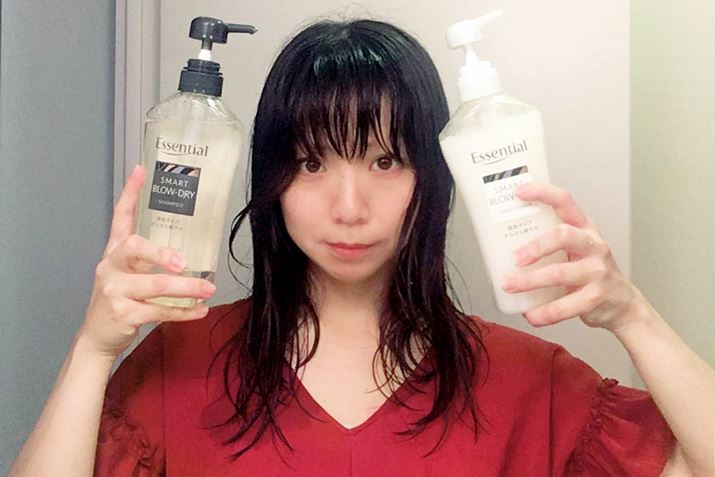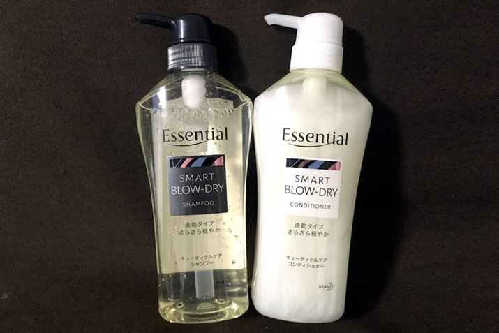 次は、なんと速乾仕様のシャンプー&コンディショナーで「エッセンシャル スマートブロードライ」。あの「エッセンシャル」がそんな商品を出しているのは知りませんでした。公式サイトによると、ドライヤー時間を20%カットできるそうです。