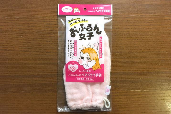 最後はこちらのヘアドライ手袋「おふるん女子 しっかり吸水 パイル&ガーゼヘアドライ手袋」! タオルで有名なあの今治産ですよ。