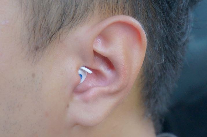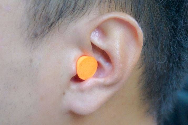 耳を上に引っ張りながら、耳栓をつけるとしっかり装着できます