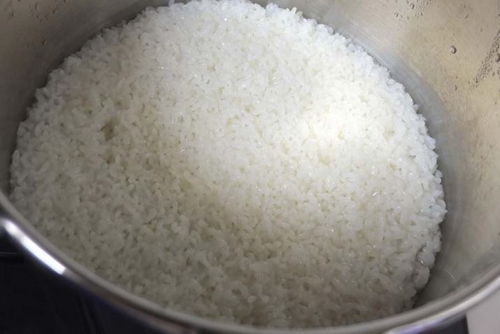 ご飯が炊きあがった直後。米ひと粒ひと粒がつやつやしていて、おいしく炊けたごはんの目印である「カニの穴」(水蒸気の泡の通り道)もしっかりできています