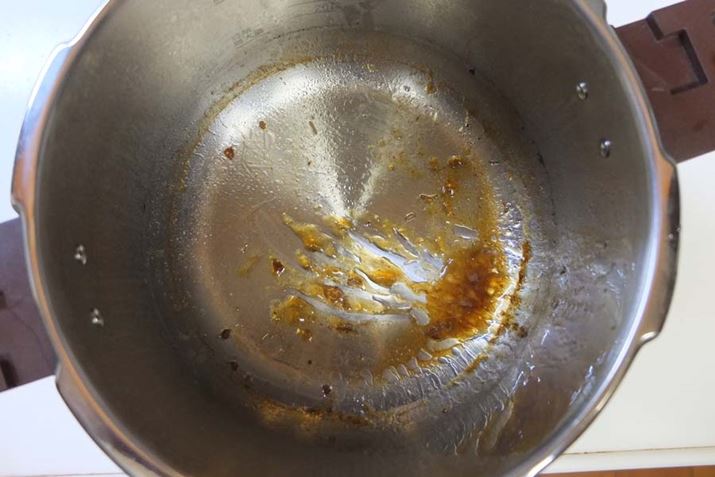 お手入れのしやすさに関しては、同じステンレス製ながら、これまでチェックした「クリプソミニットイージー」や「クイックエコ」より、こびりつき汚れがいくらか落ちやすく感じました。豚の角煮を作ったときの肉のアクは亀の子たわしでゴシゴシ洗わないと落ちませんでしたが、ほかの2製品がたわしを使ってもなかなかアクが落ちなかったのに比べると、多少落としやすかった印象です。ただ、いわしの梅干煮を作ったあとには、パッキンなどにニオイが残ってしまいました。いっぽうごはんのこびりつきは、鍋にお湯を張って浸けておくことで比較的ラクに落とせました。ちなみにメーカー側では、鍋の内側に全面フッ素樹脂加工を施し、焦げ付きにくく汚れも落としやすい「魔法のクイック料理 AQシリーズ」という製品も用意しているそうです。