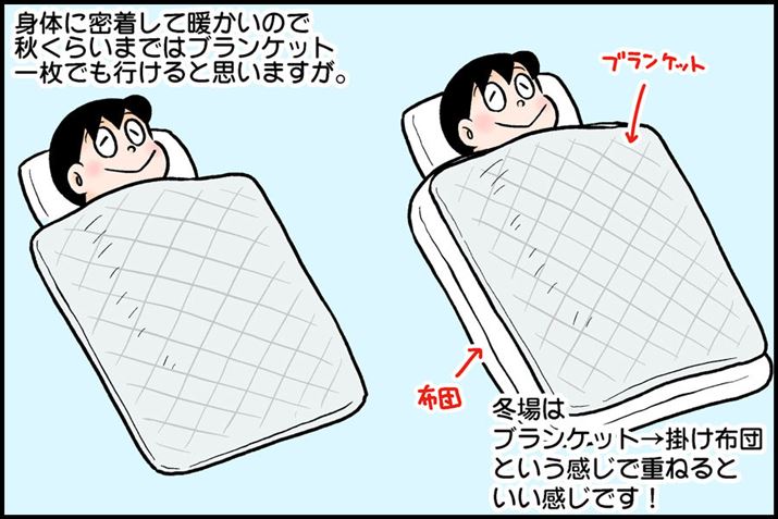 重いブランケットをかけることによって、何かに包まれるような、誰かに抱きしめられているような感覚になり、安眠度が高まるんだそうです。