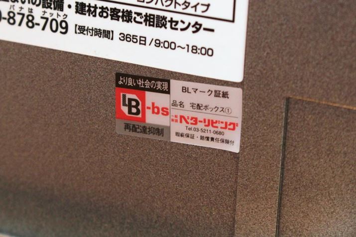 認定基準をクリアした宅配ボックスには、「BLマーク」のシールが貼付されます。パナソニックのCOMBOシリーズは、このベターリビングの認証を得た第1号の宅配ボックスなんです。まさに安心設計!