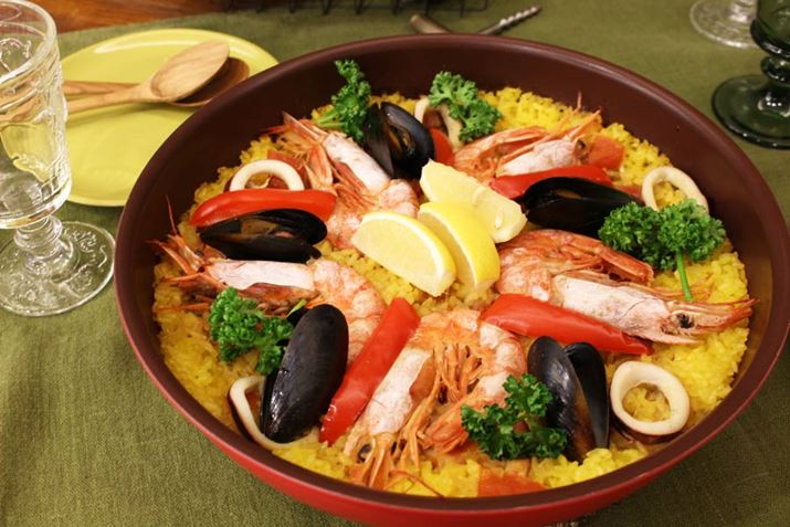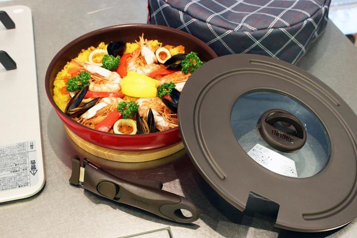深い設計なので、パエリア作りにも最適。作ったあとは、取っ手を外してテーブルに置くと、このとおり! なかなか見栄えもいい感じです