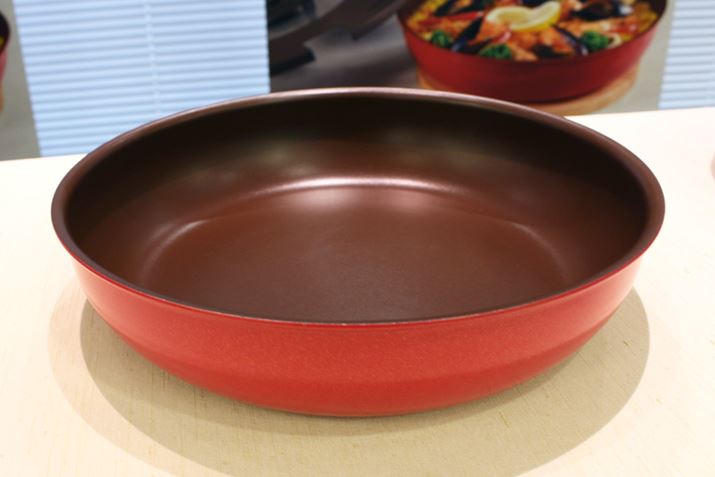 フライパンは、レッドとブラックの2カラーが用意されています。フライパンをお皿として食卓に並べた際にも違和感がないように、内側は陶器をイメージしたブラウンカラーとされました