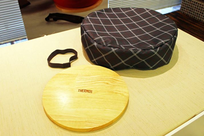 保温するためのカバーとプレート。プレートに載せたフライパンの取っ手を外し、フタをしてカバーをかぶせて使用します