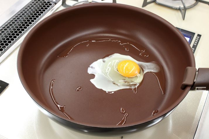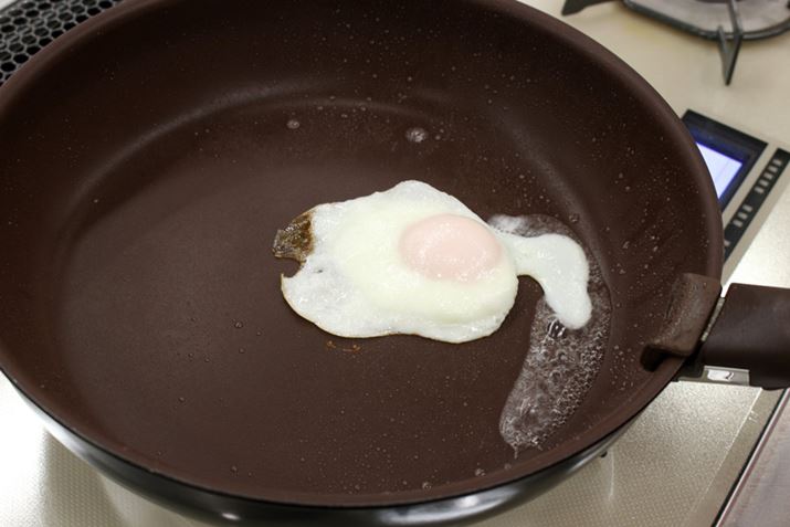 試しに目玉焼きを作ってみました。焦げ付きにくいコーティングがなされていますが、軽く油を塗ったほうがいいそうです