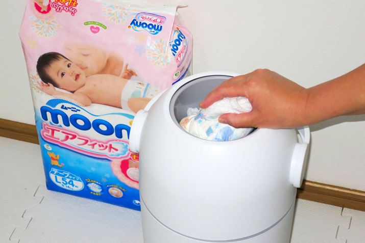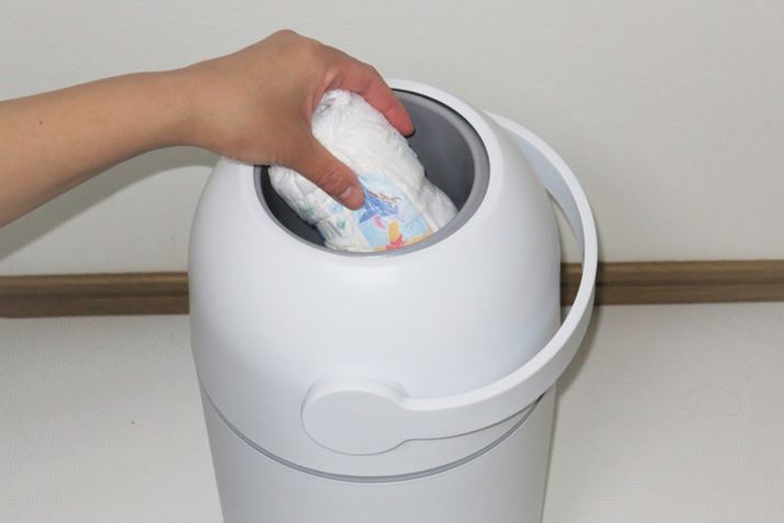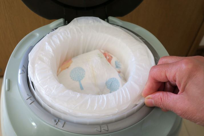 ゴミ箱の準備ができたので、さっそく我が子の使用済み紙おむつを捨ててみます