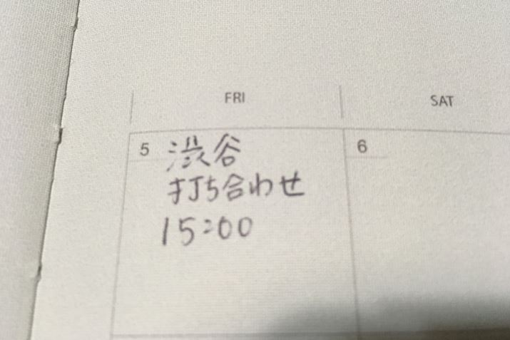 スマホでいいという方も多いですが、ペパーミントは、スケジュール管理は手書きの手帳が好きなアナログ派でして、どうしても「書き込む」という動作がないと予定をインプットできない人間です。とはいえ、手帳をずっと肌身離さず持ち歩けるわけではないため、スマホにも予定が入っていないと不便なのも正直なところ。