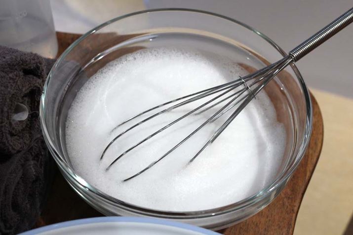 「シャンプー バー」を水に溶かし、泡立て器で泡立てた状態。泡立ちは申し分なく、質感もふんわり。摩擦がなくても泡立つので、髪を傷めることなく使用できるそうです