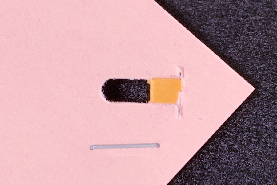 ペーパークリンチ同様にU字型のとじ穴を採用しています。同じ理由で4点としました。
