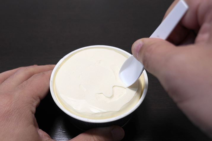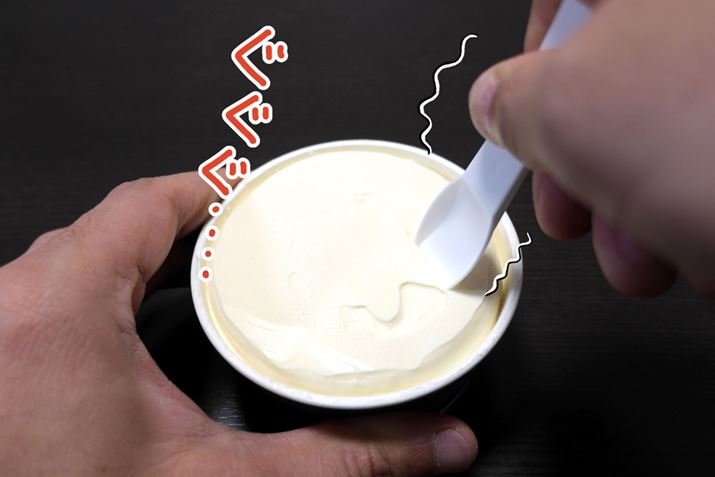 先ほどはカップアイスの中でも比較的柔らかめな「MOW」でしたが、もっと硬いアイスだったらどうでしょうか?