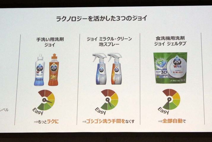 P&Gは、今回発表した食器洗いを楽にする洗浄テクノロジーの進化を「ラクノロジー」と命名。発表会に登壇したP&G執行役員 マーケットストラテジー&プランニング兼ホームケアのヴィリアム・トゥラスカ氏は、「『ジョイ』発売当時の1996年には約40%だった共働き世帯が約70%に急増した日本において、“忙しい中でも、家事のクオリティには妥協したくない”という人たちの家事負担が、『ジョイ』を使って少しでも楽になれば」と語りました。