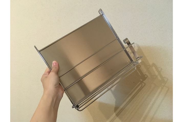 使わないときは折りたたんでタオルハンガーとしてのみ機能しているのがうれしいですね。ここにテーブルが現れることでかなり料理するのが楽しくなりそうです……! ステンレス製なので丈夫ですし、お手入れもしやすいかと。