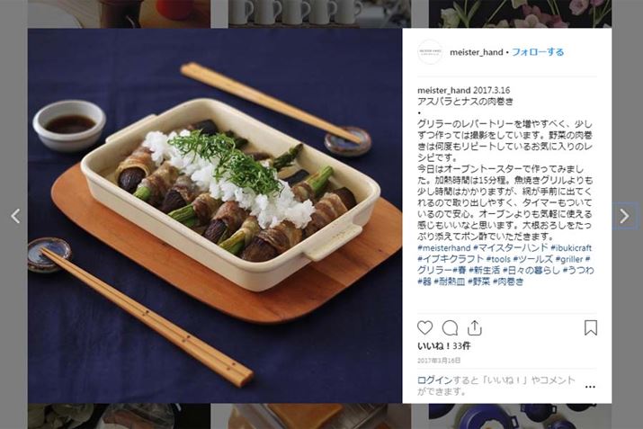 調理してそのまま食卓に出すと、小洒落たひと皿に。洗い物も少なくて済みます。画像はイブキクラフトの公式インスタグラムより
