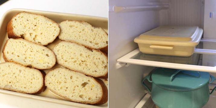 牛乳や砂糖を混ぜた卵液をグリラーに入れ、バゲットを浸します。冷蔵庫でそのまま保存してそのままグリルに入れればよいだけなので、余分な洗い物が出ません