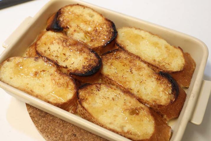 グリラーのよいところのひとつが、食材のにおいが付きにくいということ。チーズダッカルビを作った後にフレンチトーストを作っても、まったくにおいは気になりませんでした。余熱した魚焼きグリルにふたをした状態で入れ、10分加熱しました。