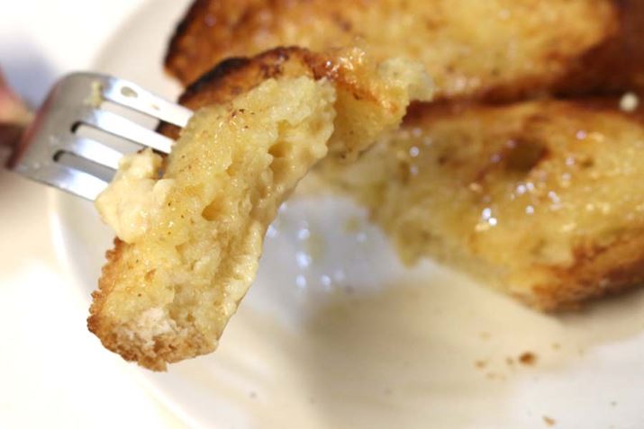 できあがりは、クラムの部分がプルプル! とくに余った卵液がプリンのようになっていて美味。フレンチトーストはフライパンで焼くと卵焼き風になってしまうので、これはグリラーならではの仕上がりと言えそうです