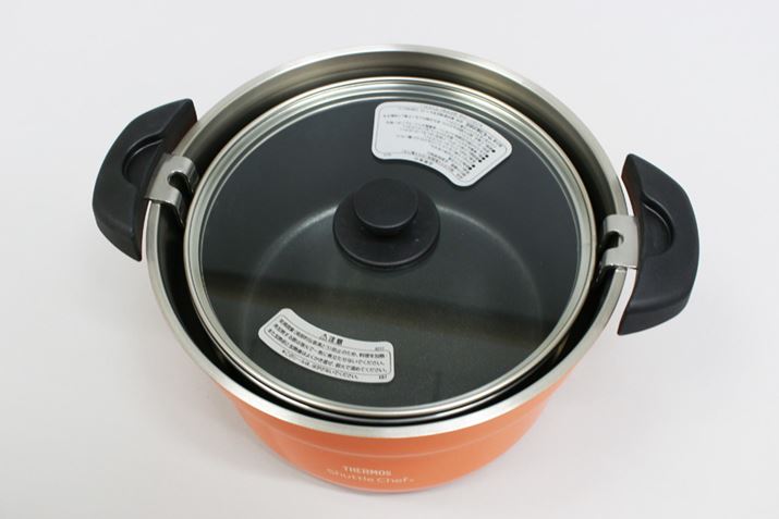 なお、シャトルシェフには、容量や用途の異なるラインアップが複数用意されています。基本的な構造は同じなのでどれでも保温調理できますが、調理鍋の素材がステンレス製とアルミ製の2種類あるので、選ぶ際には注意しましょう。もともとはステンレス鍋のみでしたが、数年前に、近年のトレンドである内側にフッ素コーティングを施したアルミ鍋が登場しました。アルミ鍋はステンレス鍋よりも薄く、軽いのが特徴。今回は、サーモスのスタッフに「初めて使うならアルミ鍋のほうが使いやすいだろう」と推薦された「KBJ-3000」を使うことにしました。