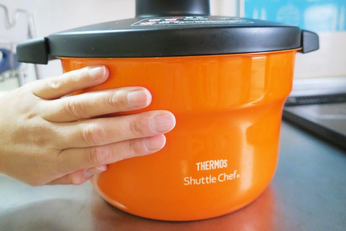 ここまできたら、ようやく最後の仕上げとなる保温調理。保温容器に調理鍋を入れて、2時間保温します。