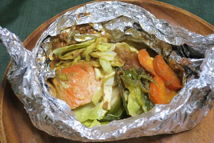 保温調理10分後の完成したちゃんちゃん焼き。筆者はこれまでフライパンで作っていましたが、ホイル内の食材が焦げ付いたり、逆に生焼けだったりとよく失敗していたので1回目で成功したことに感動!