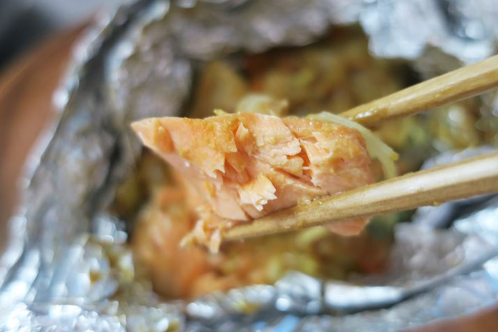 余熱で加熱しているため、鮭の身も硬くなっておらず、食感も味わいも完璧。野菜も一緒に摂れ、かつ、加熱や保温時間も短いので、今後もひんぱんに作りたい一品です