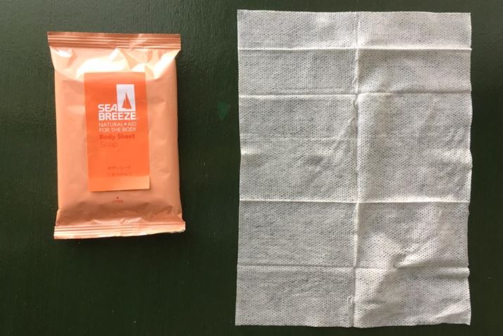 デオドランド系で有名な老舗ブランド「シーブリーズ」の汗拭きシート。オレンジ色のパッケージがまぶしい! 無香料もありますが、一番人気の「せっけん」の香りを選びました。シートはメッシュ構造で薄めなものの、約20×25cmもあり、たっぷりと液を含んでいて全身しっかり拭けました。香りはそこまでキツイ感じがしないので、使用後も嫌みがない感じがよかったです。メントールが入っているため、使い終わった後は清涼感があり、汗拭き度もなかなかかと。大判なため、ほかの製品と比べて持ち歩くにはやや大きいかな? というサイズ感です。運動後にいいかもしれませんね。