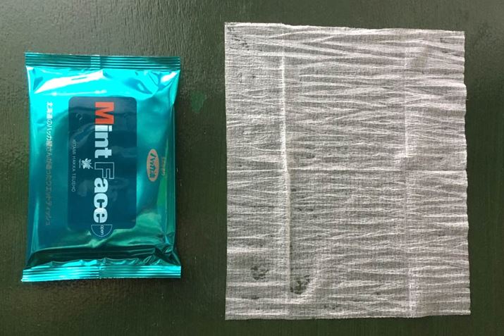 ハッカ油やハッカ飴でおなじみの「北見ハッカ通商」が作った汗拭きシート「ミントフェイス」。開けた瞬間、「ミント〜!!」と言ってしまいそうな強い香りがします。でもほかのスーッとする系のメントール入り汗拭きシートと違い、ミントがしっかり香るためか、どこかアロマ用品っぽい雰囲気。用途としては汗拭きシートなのですが、ウエットティッシュのような薄さでした。エタノール(アルコール)は入っておらず、本当にハッカ油を染み込ませたシート、という印象なので、肌に触れて痛い感じやスースー感は思ったよりもなく、やさしい清涼感が心地いいですよ。ニオイを抑える、というよりもミントの香りを楽しむ、が近いかと思います。