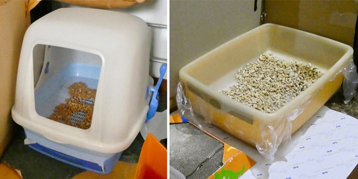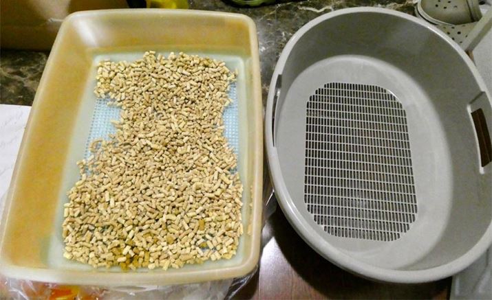 そこで次は、いつも使っている猫砂を少し、「上から猫トイレ」の猫砂に混ぜてみました。いつものニオイがすると入るのではないか? という作戦です。